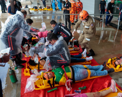 Profissionais das UPAs de Fortaleza participam de simulado com múltiplas vítimas realizado pela Força Nacional do SUS